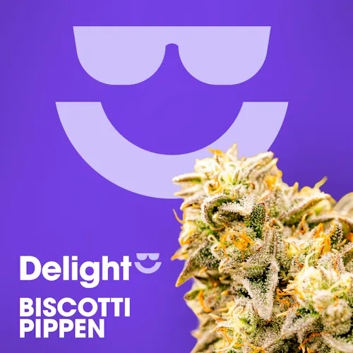 Find Delight’s Biscotti Pippen flower at Hashery and keep the good vibes flowing.